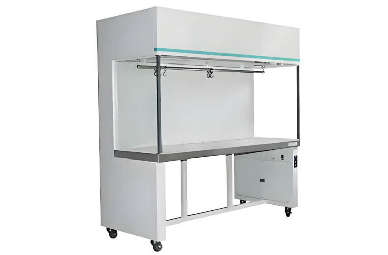 垂直流净化工作台不同于水平流净化工作台,一般采用垂直单向流净化原理的气流形式,将低噪音离心风机、静压箱、高效过滤器结合单独一体的单元式结构。