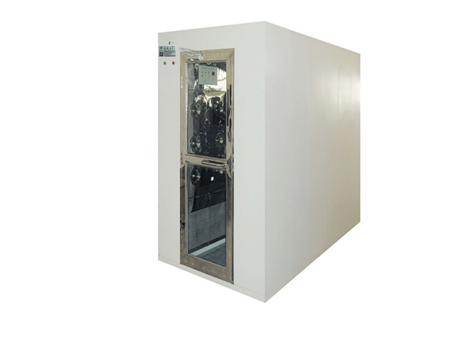 风淋室(AIR SHOWER)是人或物料进出洁净区必需的通道,起到气闸和净化的作用。它利用风机抽取风淋室内部的循环空气,经初效、高效过滤器过滤净化后,将洁净气流从喷嘴高速喷射到人和物料表面,迅速清除人身服饰或物料表面带来的尘埃粒子及细菌,并将吹落的尘埃粒子和细菌经循环气流吸收和容纳在初效、高效过滤器内。